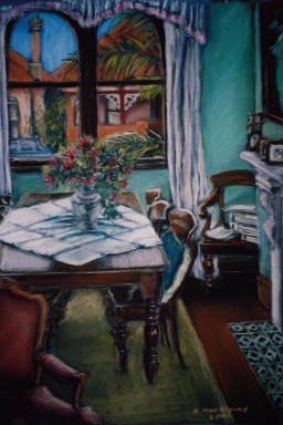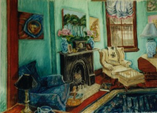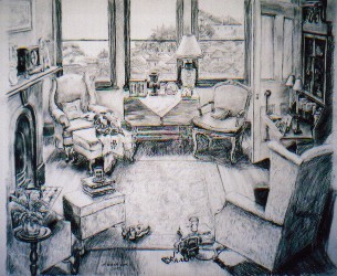 Drawing:Interior with View, charcoal and pastel, 89X75 cm