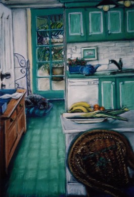 Interior, Kitchen and Pooch, pastel, 26.5X37cm